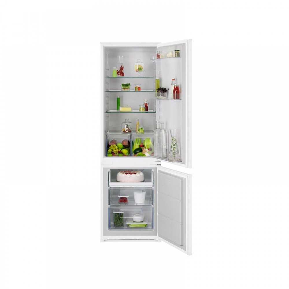 AEG OSC6L181ES iz serije 6000 je moderan kombinirani ugradbeni hladnjak s ledenicom koji pruža optimalne uvjete čuvanja hrane uz napredne tehnologije hlađenja. S Ukupnim kapacitetom od 271L (198L hladnjak + 73L ledenica), idealan je za obitelji i korisnike koji trebaju prostrano i učinkovito rješenje za pohranu namirnica.